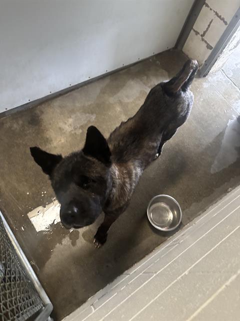 The shelter named me Comet. I am a 2 year old neutered male brown brindle Dutch Shepherd. I have been at the shelter since Monday, June 16, 2025. Must provide proof of home ownership or landlord approval at the time of adoption.