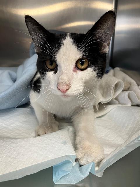 The shelter named me Knight. I am a 3 year old male white & black Domestic Shorthair. I was found not wearing a collar on N Tully Rd/Fulkerth Rd. I have been at the shelter since Wednesday, October 15, 2025. I will be available for adoption on Wednesday, October 22, 2025. Must provide proof of home ownership or landlord approval at the time of adoption.