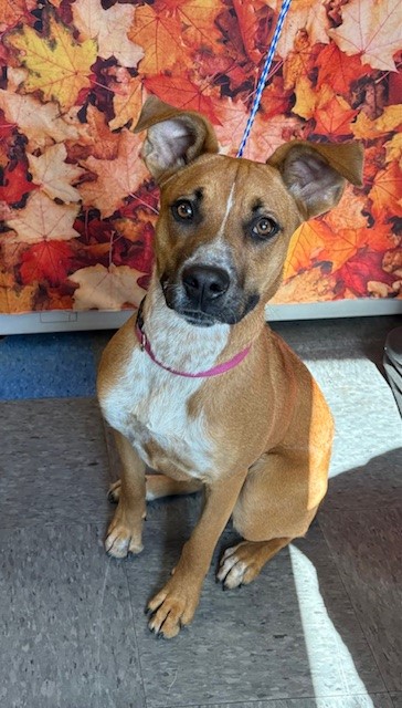 The shelter named me Sharon. I am a 1 year 1 month old female tan & white Queensland Heeler Pit Bull Terrier. I was found not wearing a collar on North Ave / Geer Rd. I have been at the shelter since Friday, October 31, 2025. I will be available for adoption on Monday, November 10, 2025. Must provide proof of home ownership or landlord approval at the time of adoption.